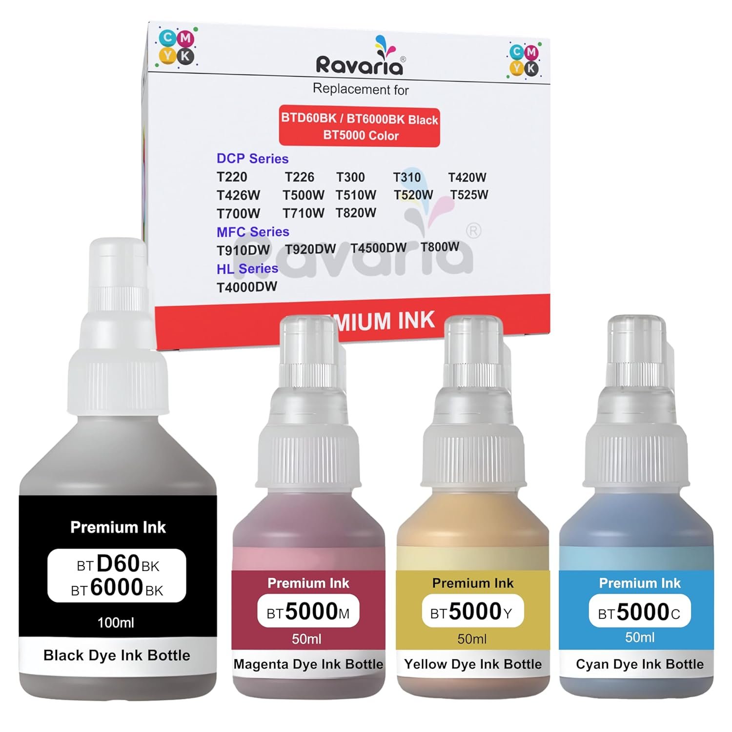 BT-D60BK / BT6000 & BT5000 CMY Compatible Ink – 4 Color Set for Brother Inkjet Printers